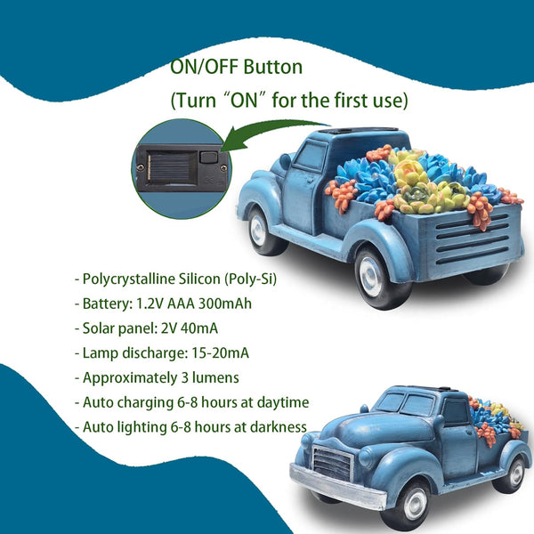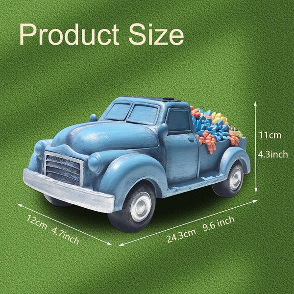 Garden Décor Outdoor Solar Lights, Blue Resin Truck Statue with Succulen Patio Lights for Home Décor, 8 LED Lights Solar Statues for Garden, Balcony, Yard Ornament, 9.6 x 4.7 x 4.3 inches