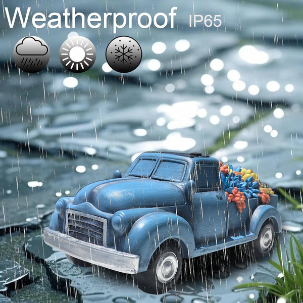 This garden solar ornament features a cute and playful truck-shaped design. The blue truck is filled with glowing succulents, bringing delightful charm to your garden or patio.